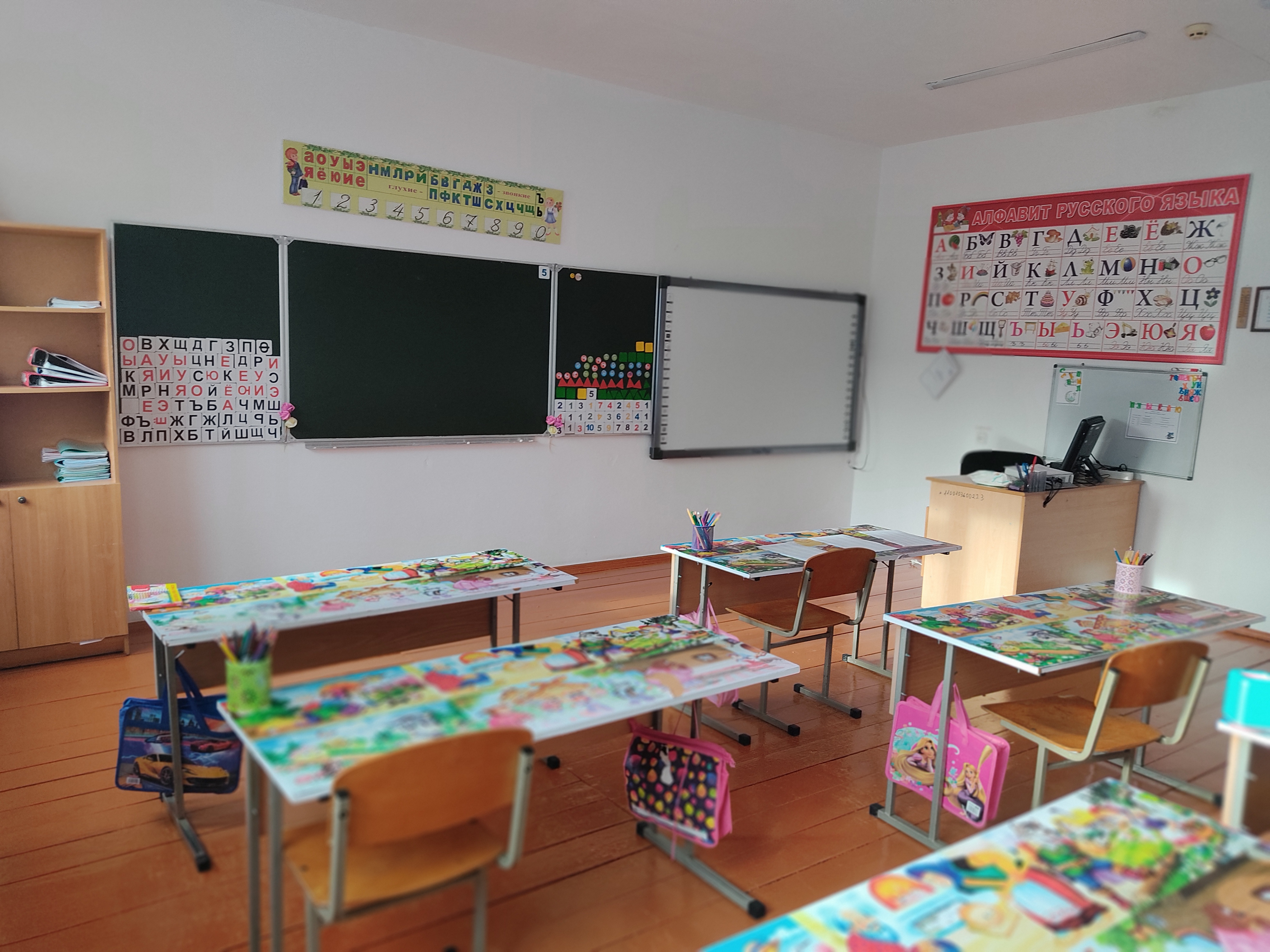 На стенах имеются стенды, которые дают основные знания для изучения языка