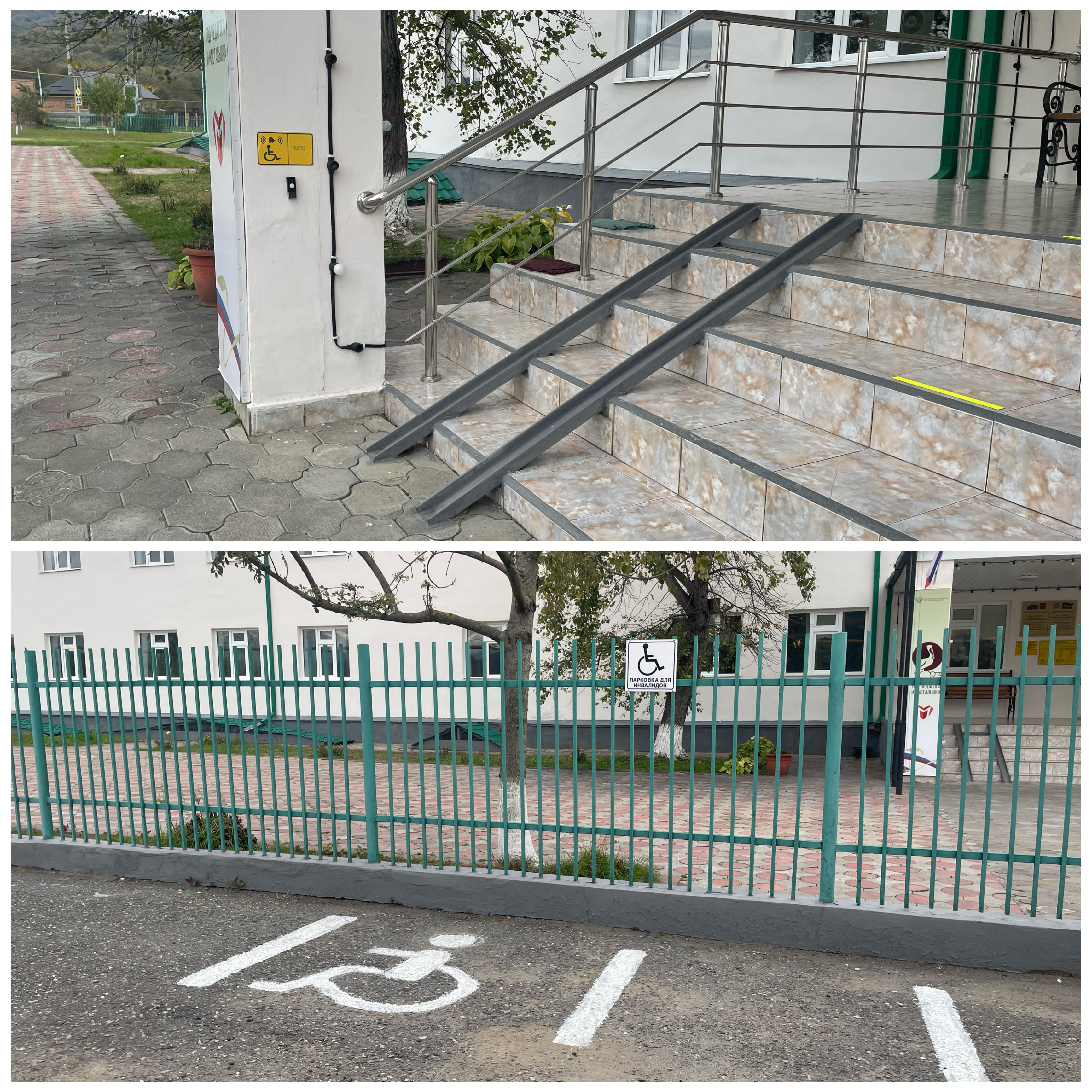 Особенности здания МБОУ "СОШ им. М.М. Мержуева с. Бамут" села Бамут не предусматривают наличие подъемников, других приспособлений, обеспечивающих доступ инвалидов и лиц с ограниченными возможностями здоровья. В 2012 г. вход в образовательное учреждение оборудован пандусом и кнопкой вызова. |