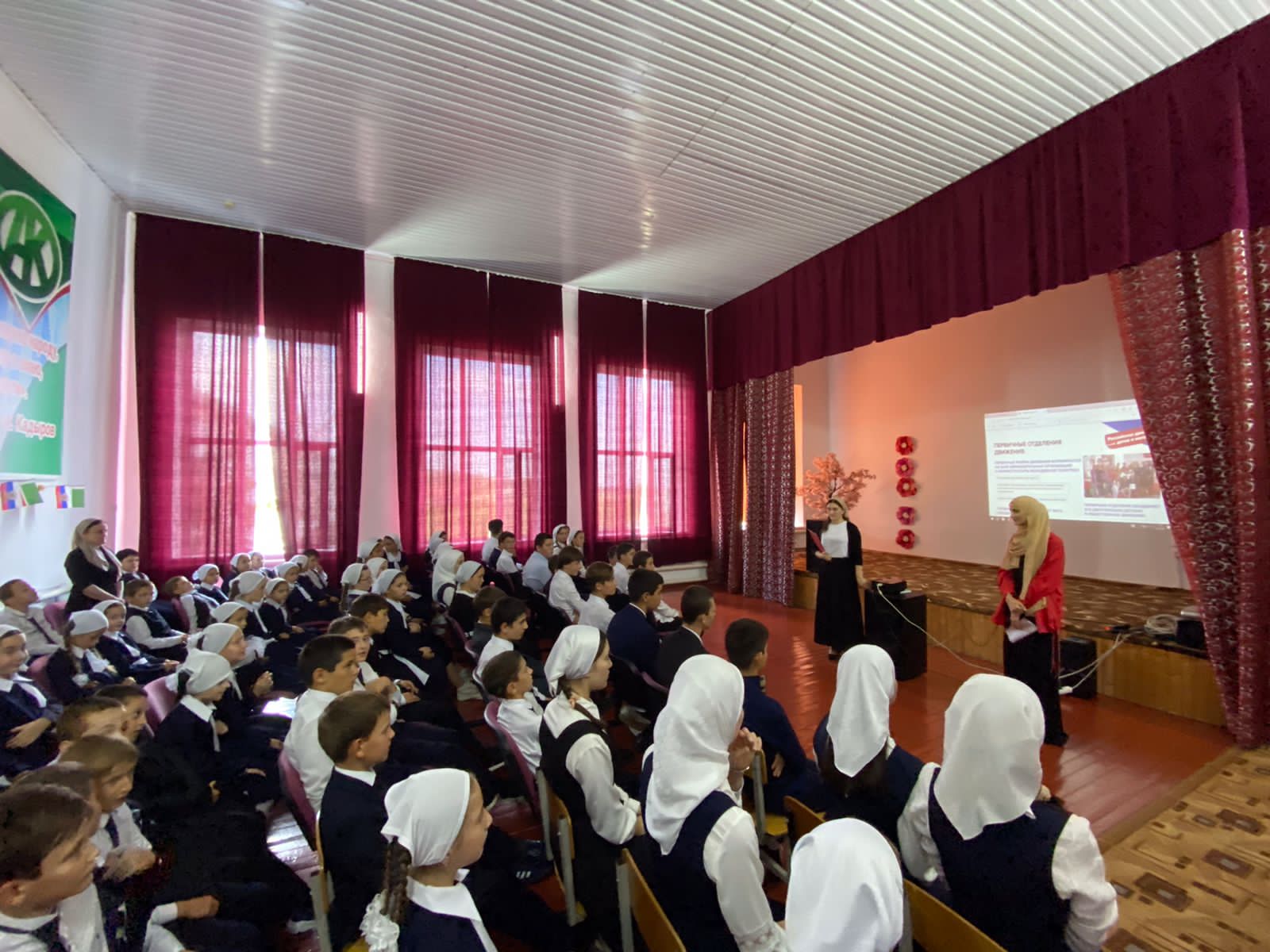 Сегодня в актовом зале МБОУ "СОШ им. М. М. Мержуева с. Бамут» у учащихся прошла встреча с сотрудниками местного отделения Российского Движения детей и молодёжи «Движение Первых»Серноводского района.
