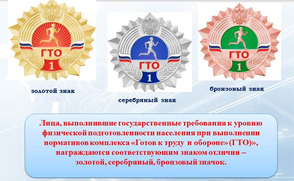 Всероссийский физкультурно-спортивный комплекс «Готов к труду и обороне» (ГТО) — полноценная программная и нормативная основа физического воспитания населения страны, нацеленная на развитие массового спорта и оздоровление нации. Комплекс ГТО предусматривает подготовку к выполнению и непосредственное выполнение населением различных возрастных групп (от 6 до 70 лет и старше) установленных нормативных требований по трем уровням трудности, соответствующим золотому, серебряному и бронзовому знакам отличия «Готов к труду и обороне» (ГТО).