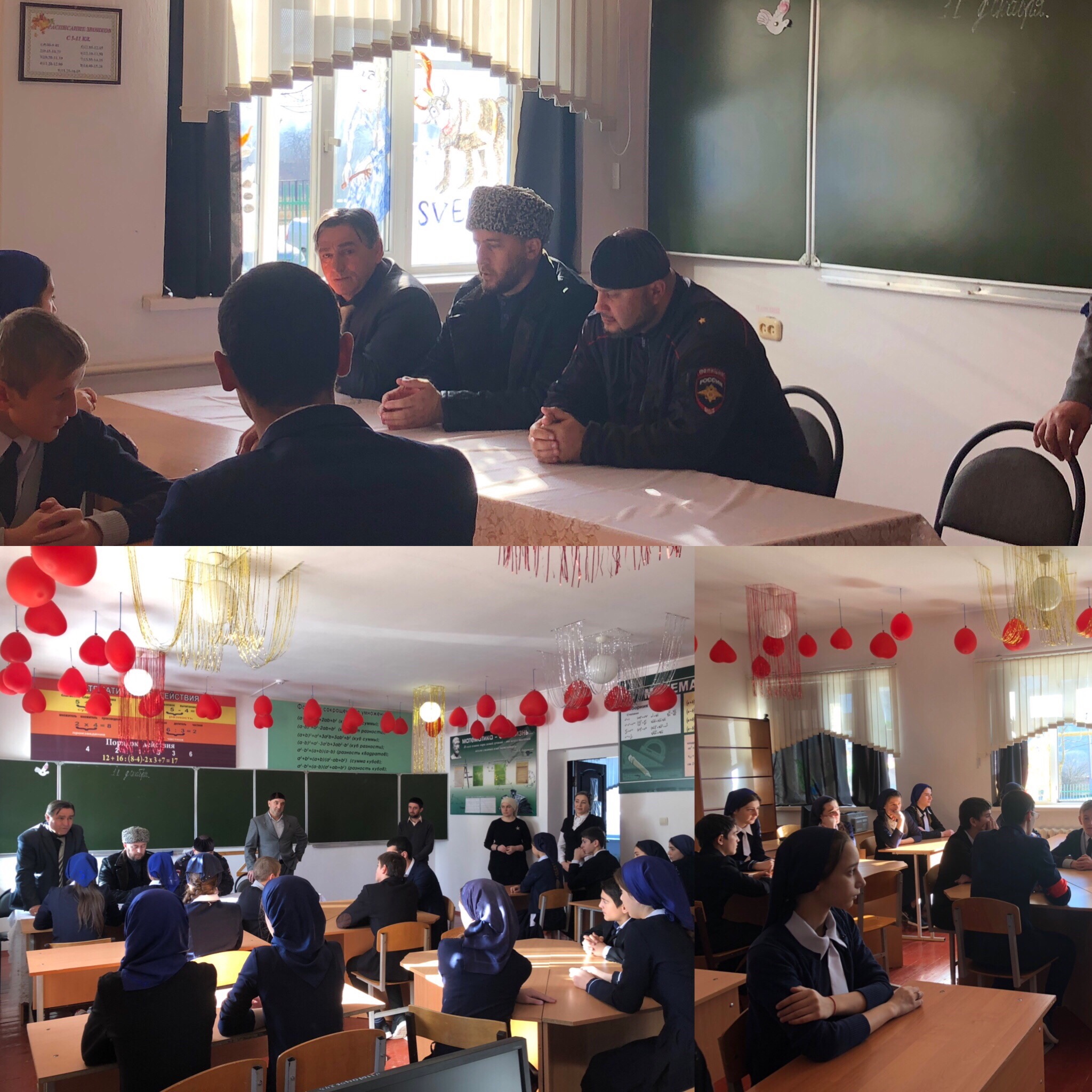 11 декабря 2019 года, Кадий Ачхой-Мартановского муниципального района Дацуев Абдулрашид с привлечением сотрудников полиции, провёл профилактическую беседу с учащимися 5-9 классов на тему: «Вред и польза социальных сетей»