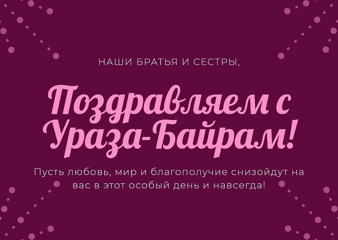 Пусть этот праздник принесет в каждый дом, каждую семью тепло и радость, согласие и благоденствие, мир и благополучие! Да примет Всевышний Аллах ваш пост, молитвы и все благие деяния, совершенные в Священном месяце Рамадан, и да воздаст за это многократно! Марханаш Дала къобал дойла!