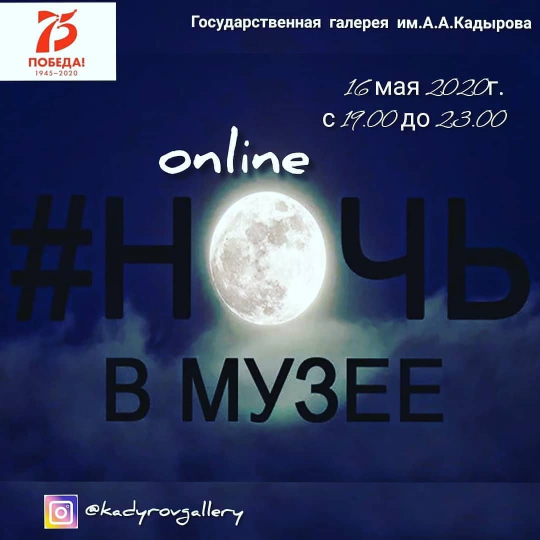 В этом году в связи с неблагоприятной эпидемиологической обстановкой галерея проведет тематические мероприятия в дистанционном формате. Программа мероприятий составлена в соответствии с девизом «Ночи музеев-2020» – «Годы фронтовые. Символы эпохи» и посвящена 75-летию Победы в Великой Отечественной войне 1941-1945 годов и направлена на поддержку сохранения исторической памяти. В рамках акции Государственной галереей им. А. А. Кадырова с 19:00 до 23:00 будут представлены: 1. Онлайн-экскурсия по экспозиции "На пути А. А. Кадырова"; 2. Литературный вечер с поэтом Борхаджиевым Хож-Бауди; 3. Мастер-класс по живописи в жанре натюрморт от заместителя директора галереи и художника Абдуллаева Артура; 4. Онлайн-экскурсия выставки картин чеченского художника - Чингисхана Хасаева; 5. История памятников в рисунках детей. Символы Победы стела "Грозный - город воинской славы"; 6. Литературный вечер с поэтом Ахматукаевым Адамом; 7. Онлайн-экскурсия экспозиции картин чеченского художника Бугаева Аслана; 8. Символы Победы. История памятника в рисунках детей "Висаитов М.А."; 9. Онлайн-экскурсия по предметам ДПИ братьев - кузнецов Юсуповых "Магия огня"; 10. "Памяти героев ВОВ" - воспоминания потомков Героя Советского Союза Дачиева Хансултана; 11. Онлайн-экскурсия "Отсюда я родом! Егоров Н.М - почетный Гражданин г. Грозный" приуроченная к 75-летию Победы в Великой Отечественной войне; 12. Символы Победы. История памятника пожарникам в Грозном в рисунках детей; 13. Мастер-класс по живописи в жанре пейзаж от художника галереи Муцаева Рустама; 14. Символы победы. История памятника "Воин-освободитель" в рисунках детей; 15. Онлайн-лекция "История праздника Международный день музеев". На нашей странице в инстаграмм будут идти прямые трансляции экскурсий, выставок, лекций, мастер-классов. Выбирайте самые интересные показы и смотрите их всей семьей #Оставайсядома #ночьмузеев @cultchr @kadyrovgallery
