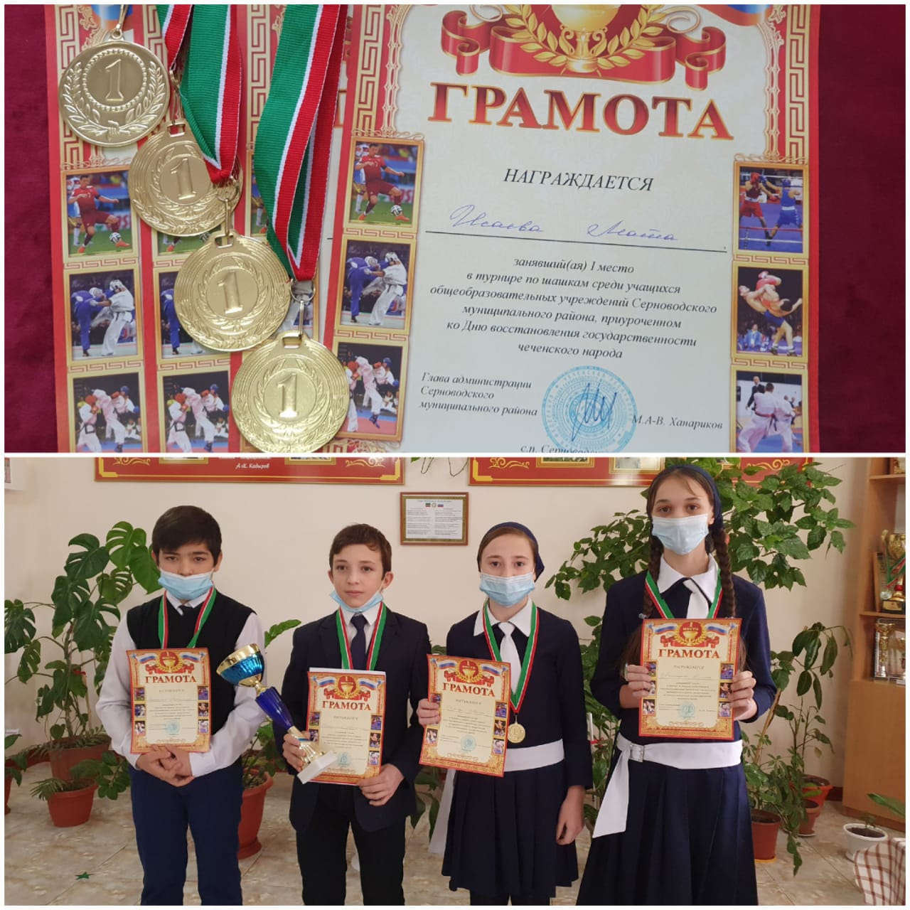 Учащиеся МБОУ «СОШ им. М.М. Мержуева с. Бамут» заняли l место в турнире по шашкам среди учащихся общеобразовательных учреждений Серноводского муниципального района, приуроченном ко Дню восстановления государственности чеченского народа