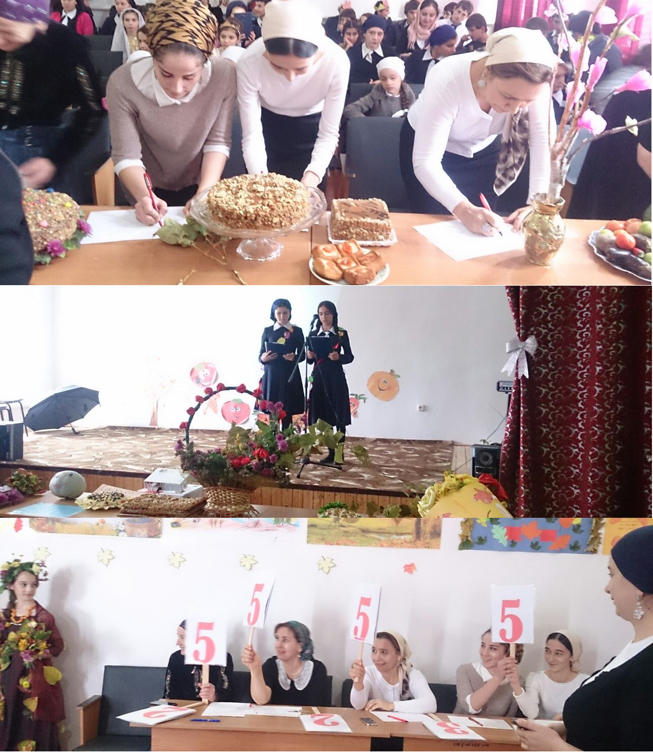 Мероприятие состояло из сценок, песен, танцев, видео роликов, стенгезет. Также был показ осенней моды, конкурс «Её и его величество Осень». По просьбе учеников в сценках были задействованы и учителя. Вели это грамотное мероприятие знатоки слова нашей школы Хабиляева Марха и Мержуева Алиса. После окончания вех конкурсов, компетентное жюри распределило места следующим образом: 1 место - 10-11 класс, 2 место - 9 класс, 3 место - 7-8 класс. А королем, королевой балла стали Дзейтов Хизир и Султанова Хеда. Директор Луиза Майрбековна прокомментировала: - Все выступили очень хорошо, на столько что всем можно было бы дать 1-ые места.