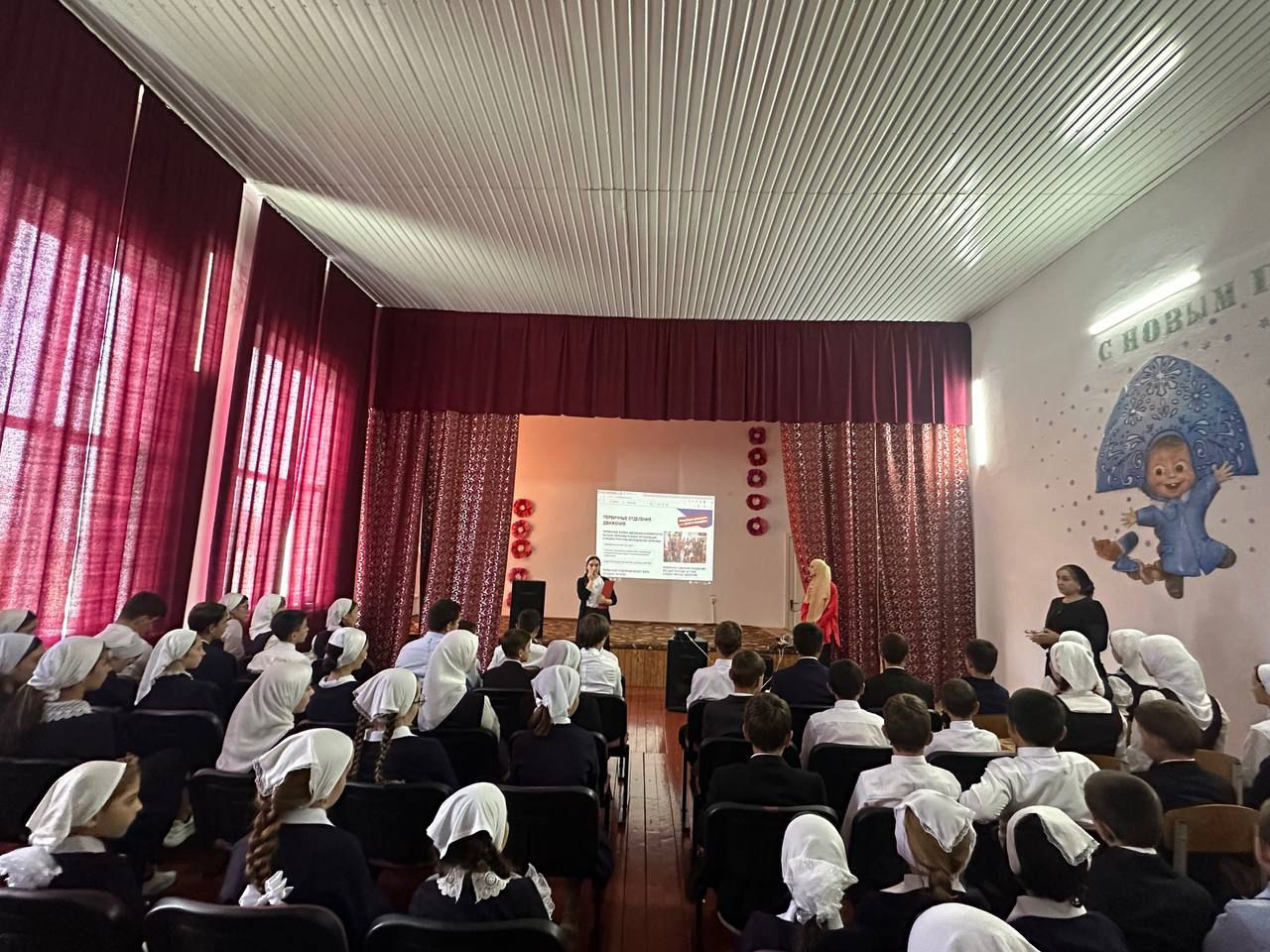 Сегодня в актовом зале МБОУ "СОШ им. М. М. Мержуева с. Бамут» у учащихся прошла встреча с сотрудниками местного отделения Российского Движения детей и молодёжи «Движение Первых»Серноводского района.