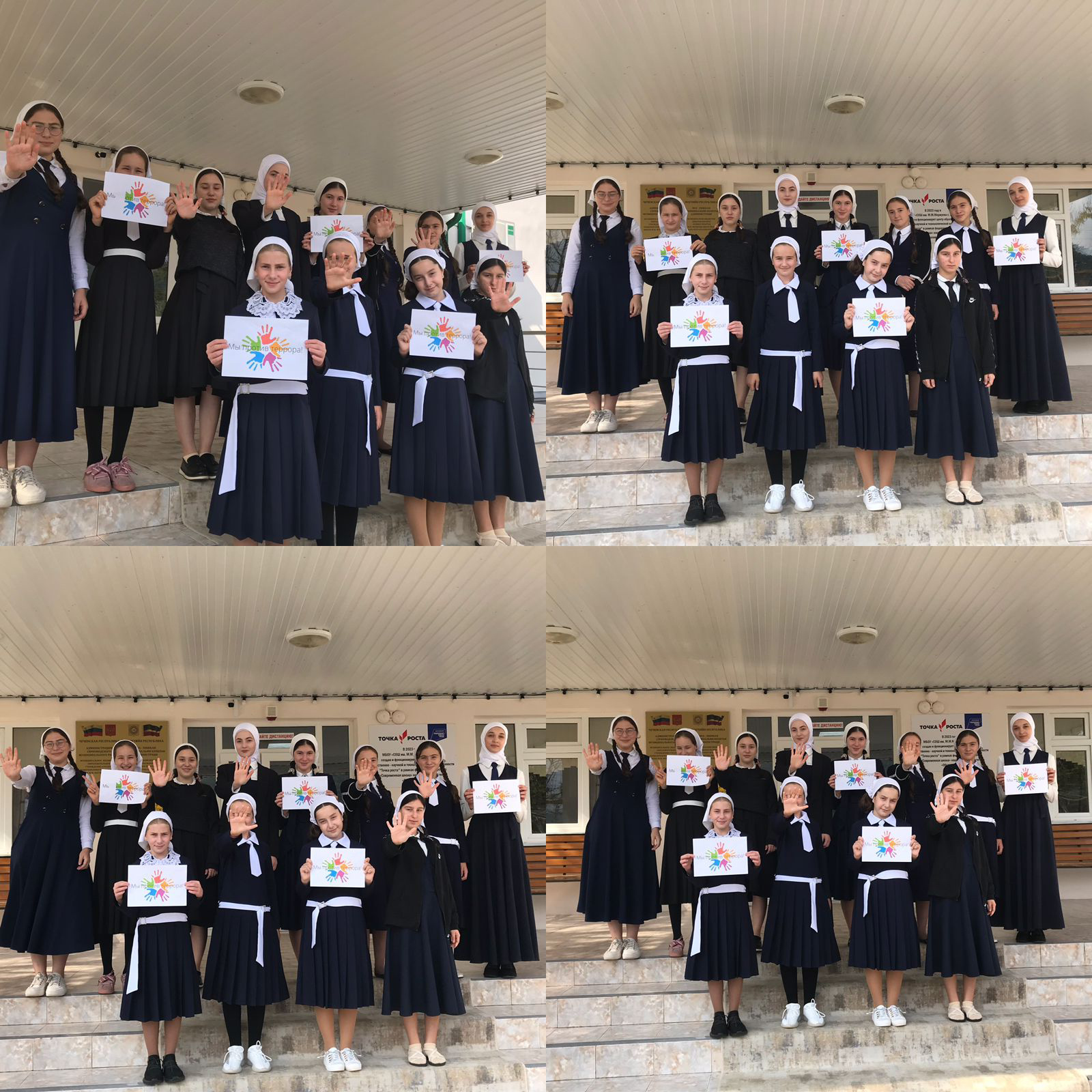 МБОУ «СОШ им. М. М. Мержуева с. Бамут» среди учащихся, прошла акция посвящённая Дню солидарности в борьбе в терроризмом: «Мы против-террора». Учащиеся провели акцию, делились с детьми, , а так же прошлись по истории «Беслана 2004г».