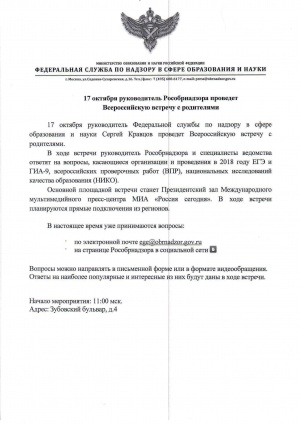 Всероссийская встреча с родителями руководителя Рособрнадзора Сергея Сергеевича Кравцова